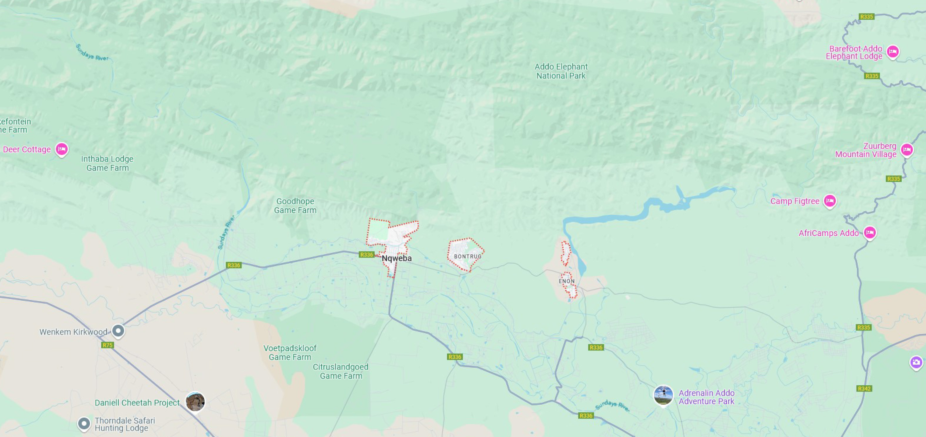 The Nqweba area is well known for citrus farming and hunting of plains game, boasting over thirty species of animals, giving hunters plenty of excitement and challenge.